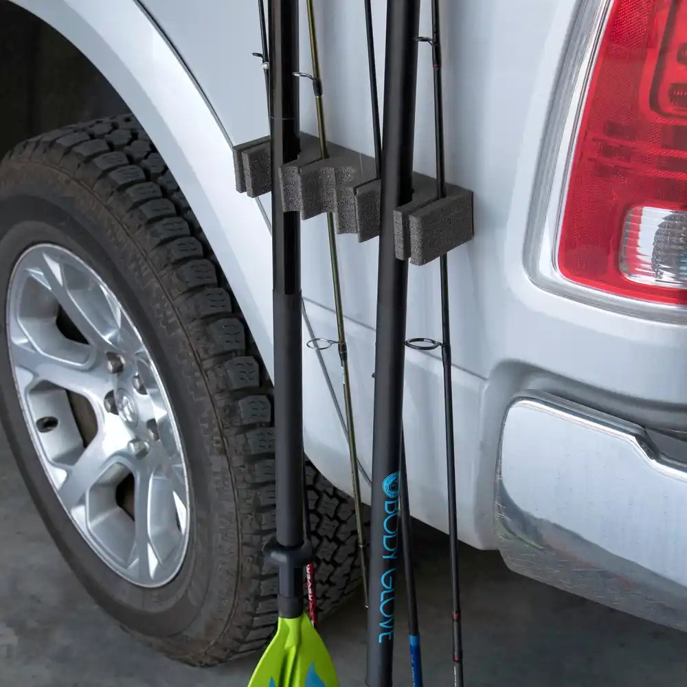 Az Allen mágneses fegyvertartója ideális három hosszú fegyver vagy négy horgászbot egyidejű biztonságos tartására. Bevonatos, mágneses hátlappal ellátott tartó könnyen és egyedileg rögzíthető fém tárgyakra, például autó karosszériára vagy fegyverszekrényekre anélkül, hogy megkarcolná azokat. A puha habból készült fegyvertartó nemcsak a hosszú fegyvereket védi, hanem a legtöbb puskával és horgászbottal is kompatibilis.
