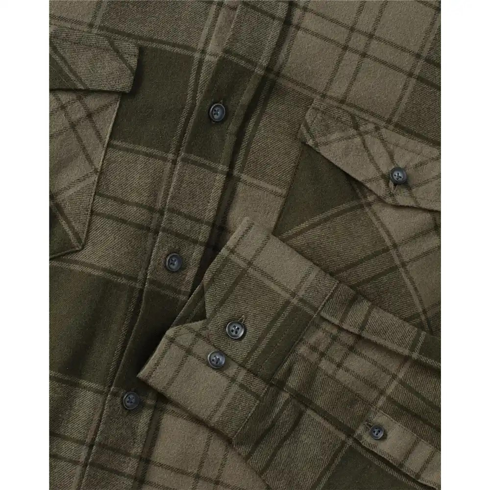 Vadászkockás minta, visszafogott zöld árnyalatokban.