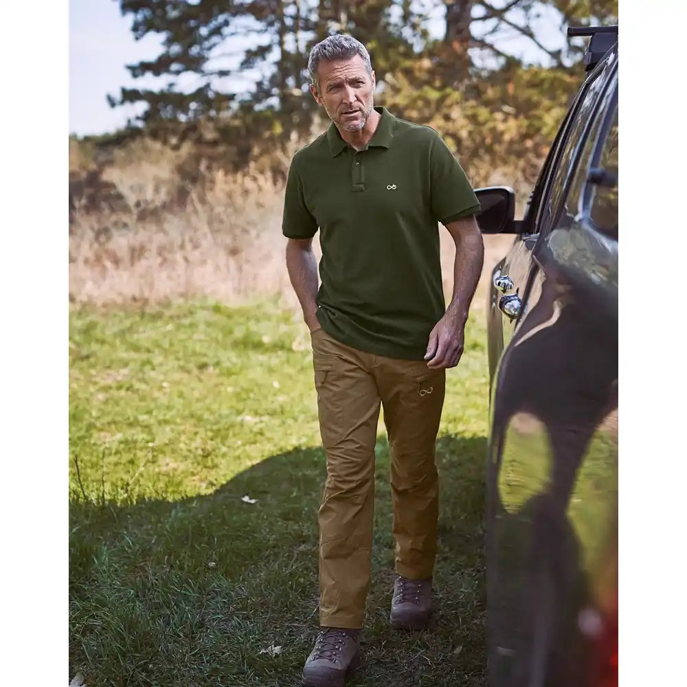 A MerkelGEAR ORGANIC pólóing 100% biopamutból készült. A kiváló kidolgozás mellett az ORGANIC pólóinget különösen erős piké minőség (225 g/m²) jellemzi, amely hosszú élettartamot garantál. Jellemzői közé tartozik a kiváló minőségű kötött mandzsetta és a sötétbarna gombokkal ellátott gombolópánt. Az oldalsó varrások szépen ragasztottak. Az ing hátul kissé hosszabb szabású. A szabása jól definiált és nem túl szűk. A mellkason egy kis világos szürke Merkel masni található.