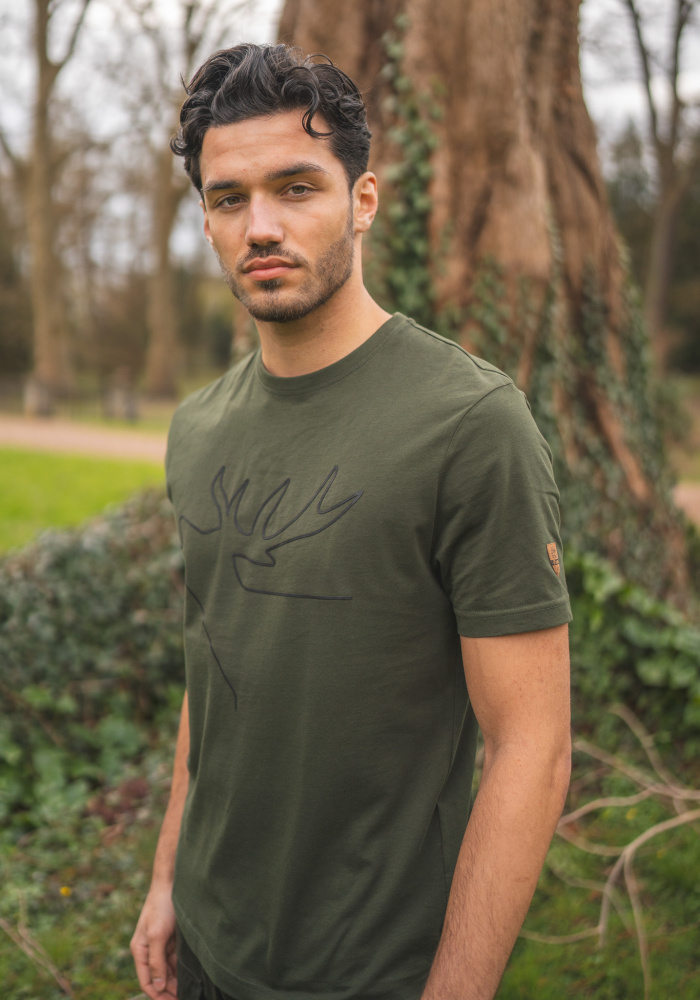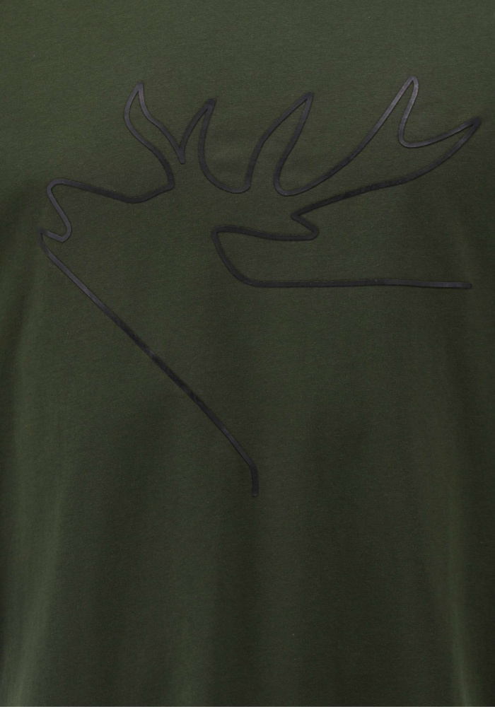 OS hagyományos férfi póló oliv szarvas mot.