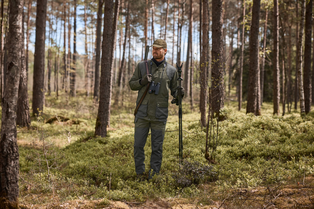 A Percussion Tradition férfi vadászdzseki az átmeneti időre lett tervezve és sokoldalúan hordható. – tulajdonságok & részletek – A strapabíró vadászdzseki robusztus, víztaszító twill anyagból készült. Sportos. középhosszú szabásával és kétszínű diszkrét kinézetével a mozgást könnyítő redőknek hála kellemes és kényelmes viselet. – funkciónak megfelelő részletek: hálós belső bélés, vállakon és a könyök résznél steppelt szegélyek, hajtókával fedett robusztus kétutas cipzár, védő állógallérként is beállítható fölcsapható gallér, két nagyszabású hajtókás zseb integrált lőszertartóval (sörét és golyó) két bebujtatós mellzseb a kezeknek, két belső zseb, egy mobiltelefon zseb, egy mindkét oldalról hozzáférhető nyúlzseb víz- és szennytaszító béléssel, egy vadhordozó horog. Gombos, állítható ujjvéglezárások.