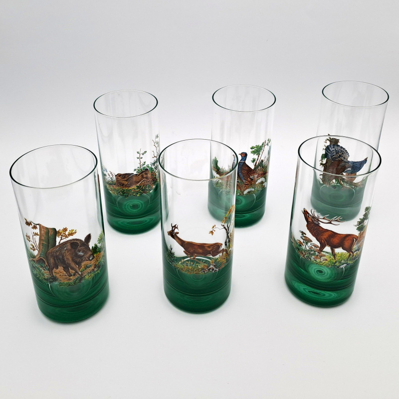 3 dl-es üvegből készült csésze állatok vadászmotívumával, zöldre festve. 6db-os pohár szett vadászmotívummal Praktikus ajándék férfiaknak és vadászoknak.A poharak állatmotívumokat tartalmaznak a szarvastól a vaddisznóig. Ezeket a vadászpoharakat gyümölcslé vagy víz tárolására tervezték minden kabinban, nyaralóban vagy vadászszobában.