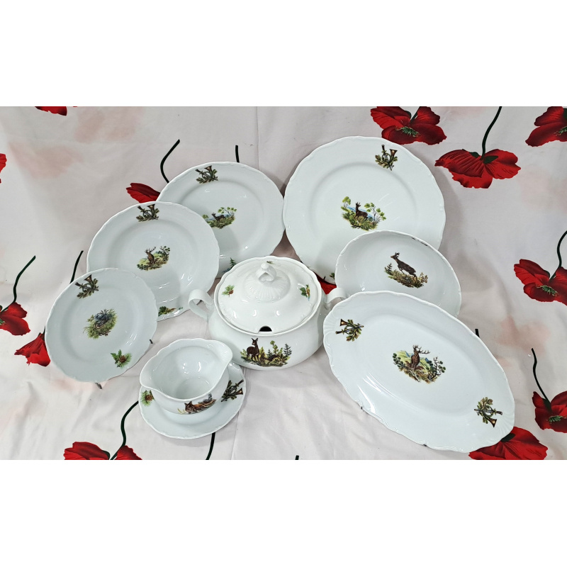Fácánleves nélkül ajánljuk e 6 terítékes porcelán ebéd,-étkészletet vadászmotívumokkal.