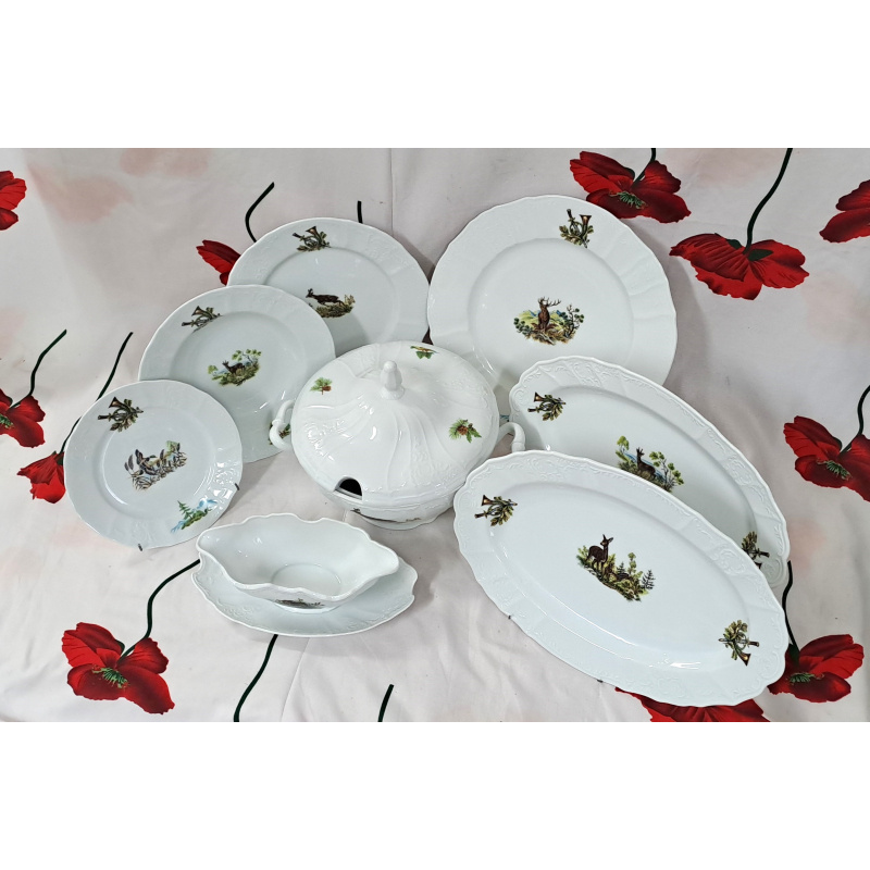 Fácánleves nélkül ajánljuk e 6 terítékes porcelán ebéd,-étkészletet vadászmotívumokkal.